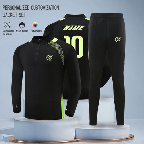 Customized Half-Zip Football Suit Set for Children Football Teams Uniforms Suit Adult Training Wear Printed Running Tracksuits